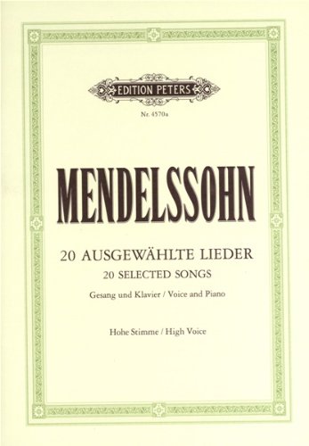 EDITION PETERS MENDELSSOHN FELIX - 20 SONGS - VOICE AND PIANO